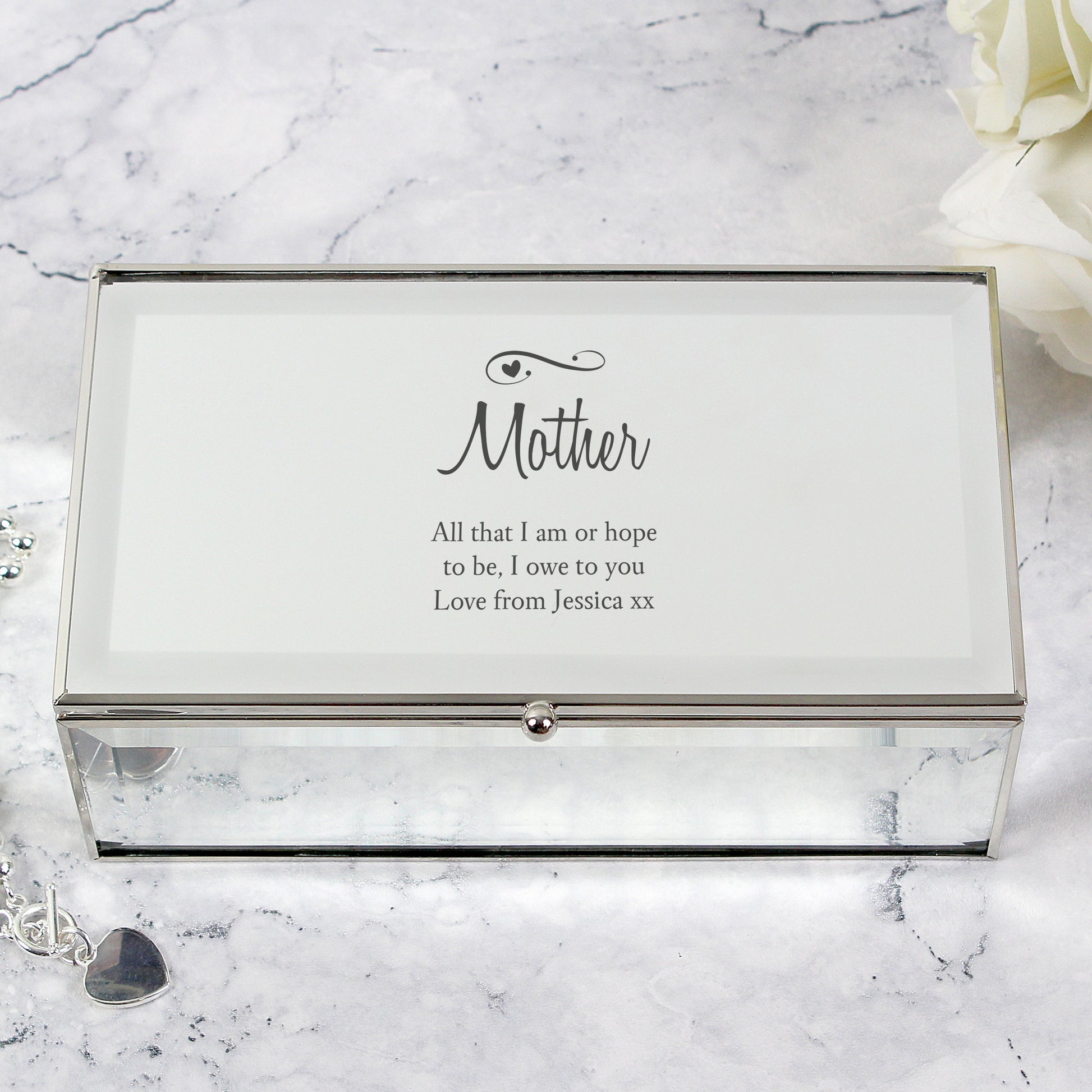 Personalised Swirls & Hearts Mirrored Jewellery Box