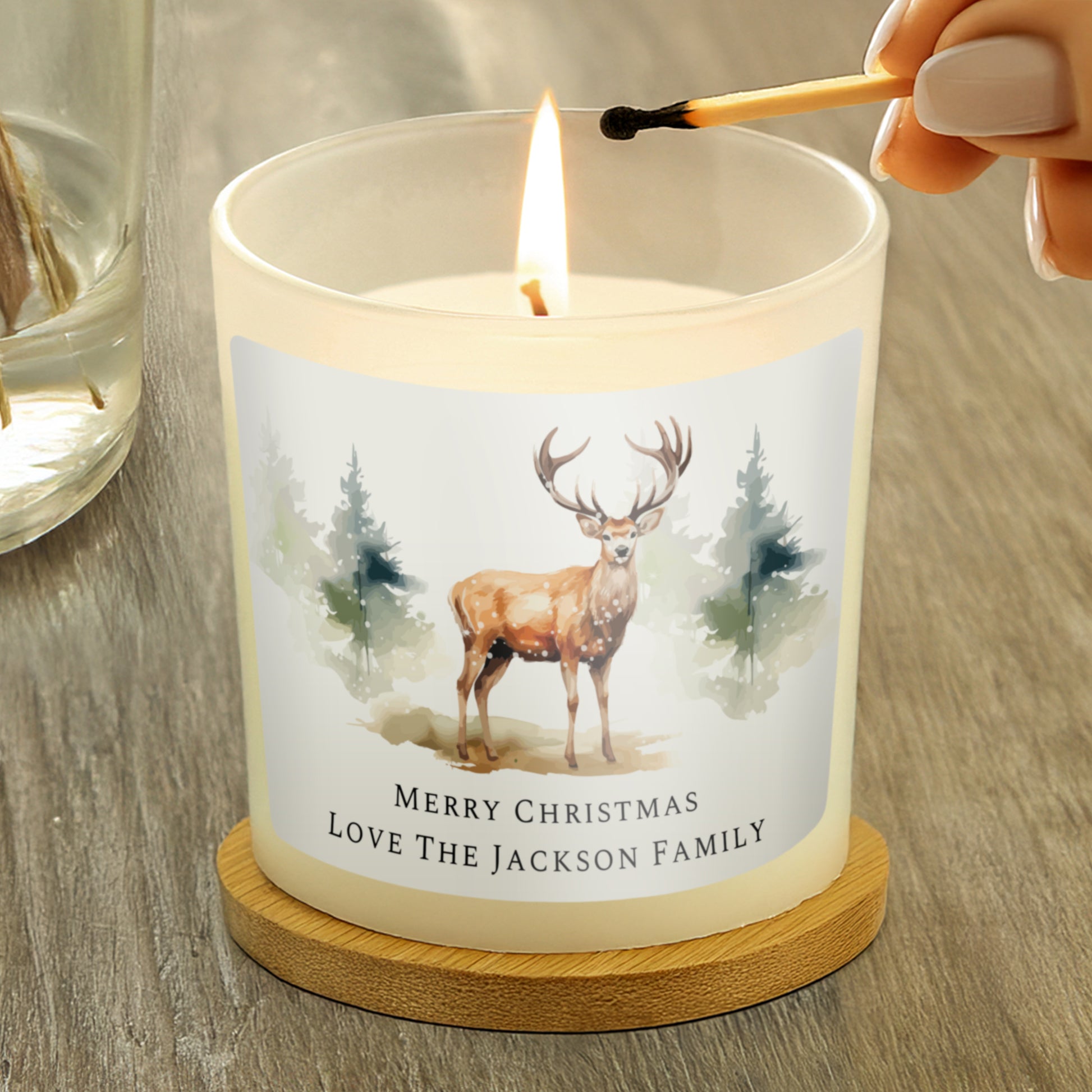 Infuse your home with the serene ambiance of our Personalised Water Colour Stag Candle Jar.